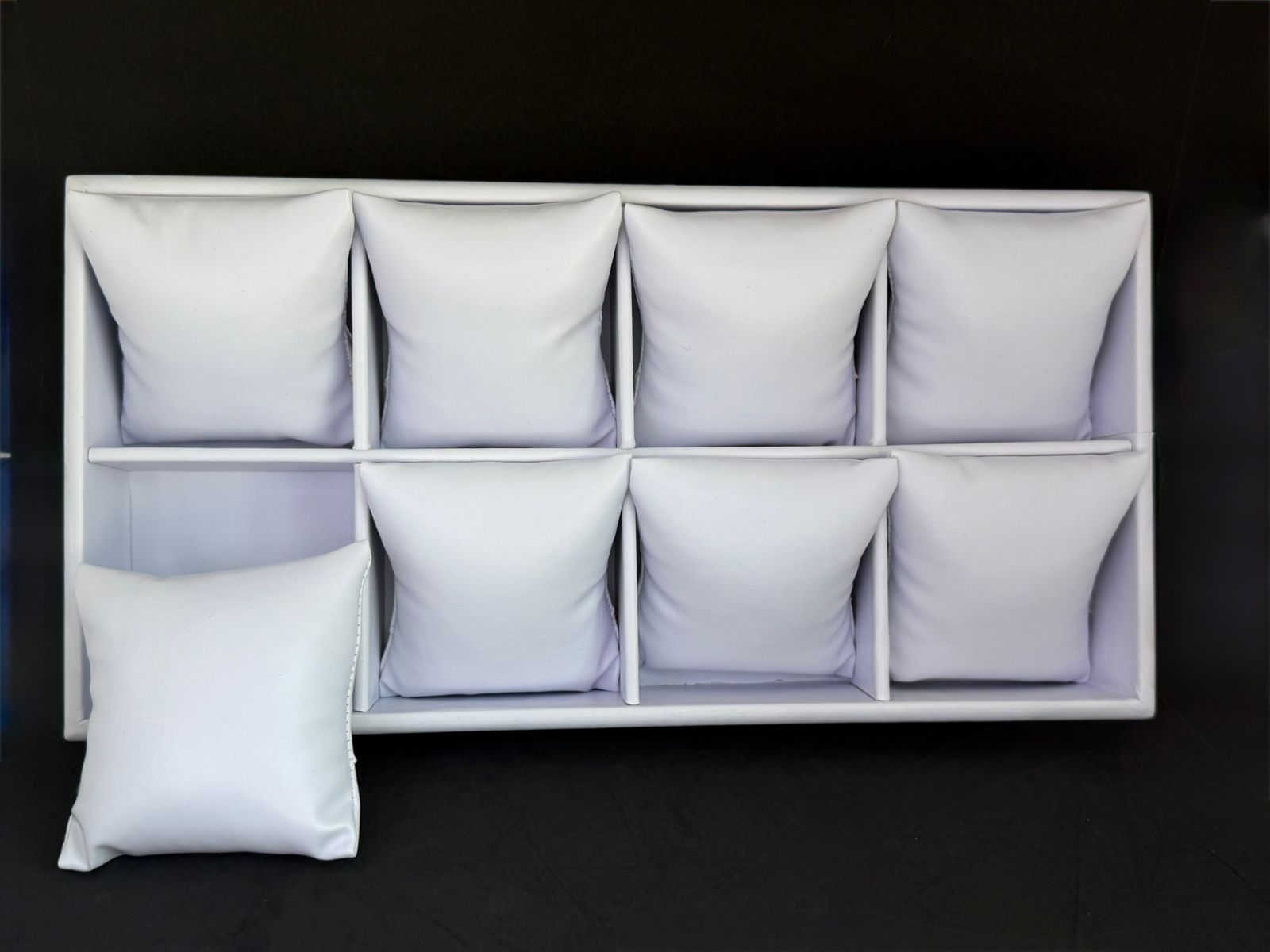 CHAROLA CON 8 ALMOHADAS COLOR BLANCO